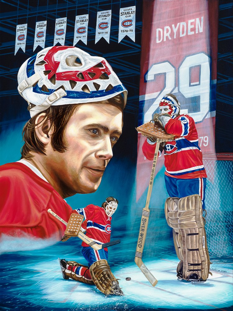 When I was first commissioned to paint Ken Dryden, I admit, I did not know a lot about the acclaimed Montreal Canadiens goalie, not being a hockey fan myself. But through watching tribute videos dedicated to him, pouring over countless photos of him, and reading articles written about his impact on the hockey world and beyond, I quickly learned about his value as a Canadian hockey legend.